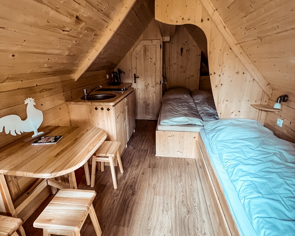 Die gemütlichen Eifelhüttenchen “Rotkehlchen” und “Blaumeise” verfügen über ihren eigenen Charme. Urig und heimelig ist das komplett aus Holz (FSC-zertifiziert) gebaute Häuschen von Innen und Außen. Im Innern erwartet den Gast eine moderne und komfortable Ausstattung, die auch bei schlechtem Wetter ein außergewöhnliches Übernachtungserlebnis bietet!